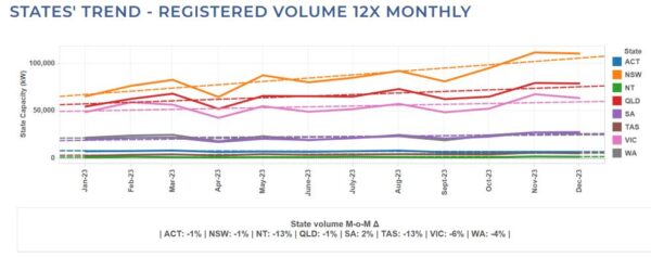 Sunwiz Managing Director Warwick Johnston described the 321 MW December 2023 total as a “letdown,” but it was the second-best month on record and is above the volumes seen in the same month in 2020, 2021 and 2022.
