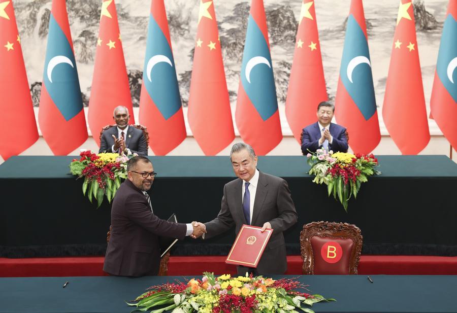 He called on the two sides to strengthen cooperation in such areas as the economy, trade and investment, agricultural parks, and the blue, green and digital economies. He also called for expanded cooperation on marine ecological and environmental protection, as well as strengthened people-to-people exchanges. He said China will support more Maldivian students to study in China and promote more direct flights between the two countries.