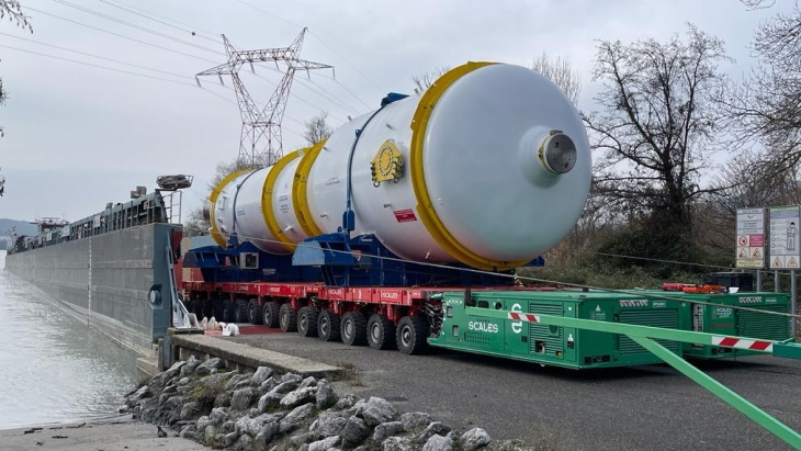 Three new steam generators - each measuring about 21 metres in height, 4.5 metres in diameter and weighing some 330 tonnes - were delivered to the Cruas-Meysse site on 11, 18 and 24 January following a two-day journey. The components were manufactured by Framatome at its Saint-Marcel plant in Chalon-sur-Saône and were then transported 283 km by barge and 3 km by road. The journey had been carefully prepared since June last year.