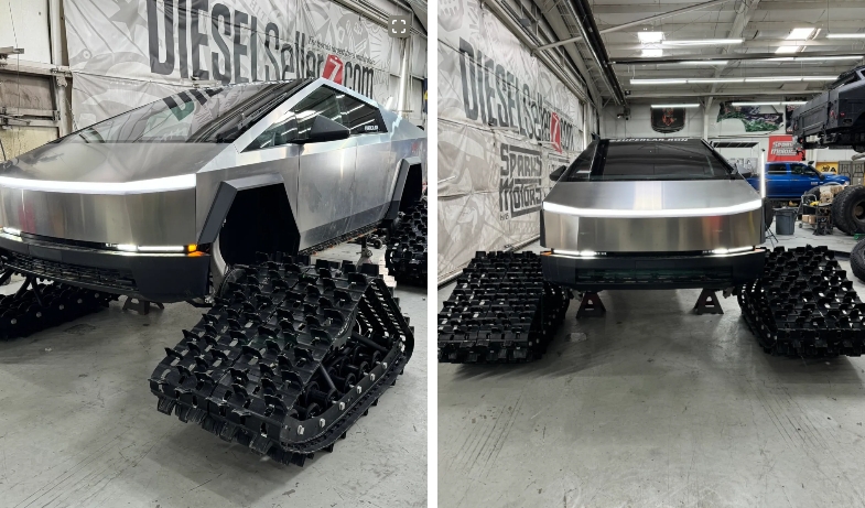 Tesla Cybertruck is often described as a tank, but it now literally comes a lot closer to one with these massive snow tracks.