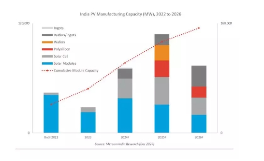 During the calendar year, the country added 20.8 GW of solar modules and 3.2 GW of solar cell capacity, taking the cumulative solar module manufacturing capacity to 64.5 GW and solar cell manufacturing capacity of 5.8 GW as of December 2023, according to a report by Mercom India.