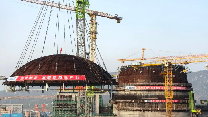 The Russian-supplied VVER-1200 unit uses a double containment to maximise safety, with reinforced concrete protecting the plant from external hazards including natural disasters such as an earthquake, tsunami or hurricane. The lower tier of the internal containment steel dome at Tianwan 8 was hoisted into place on 13 March.