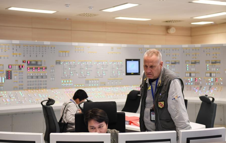 Staff members from China and France work in the main control room of Taishan Unit 1 of Taishan Nuclear Power Plant in Taishan, south China's Guangdong Province on Dec. 20, 2018. (Xinhua/Deng Hua)