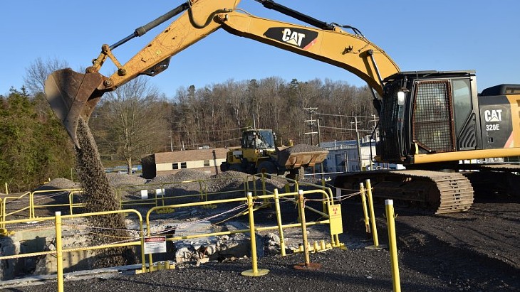 Workers fill in the pit where the reactor previously stood (Image: DOE-EM)
