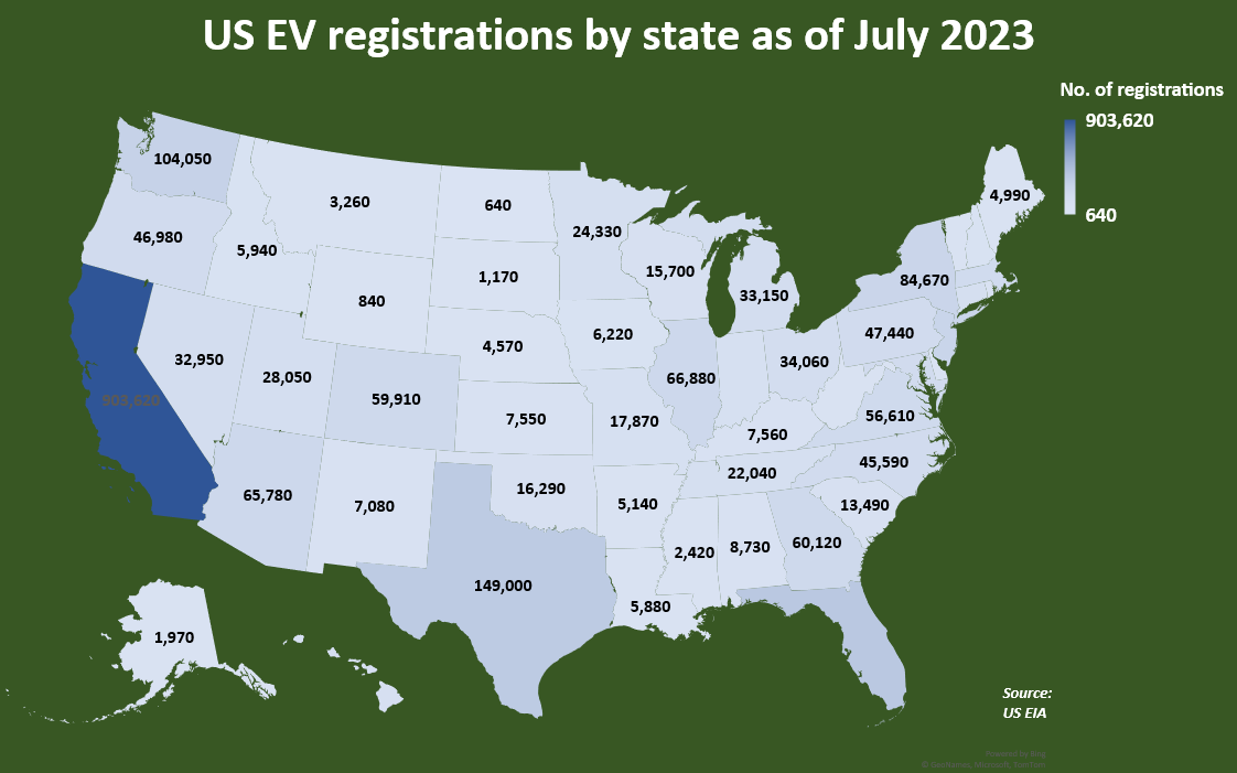 That share was down from 35.2% in 2022, indicating that EV electricity demand grew faster in other states last year.