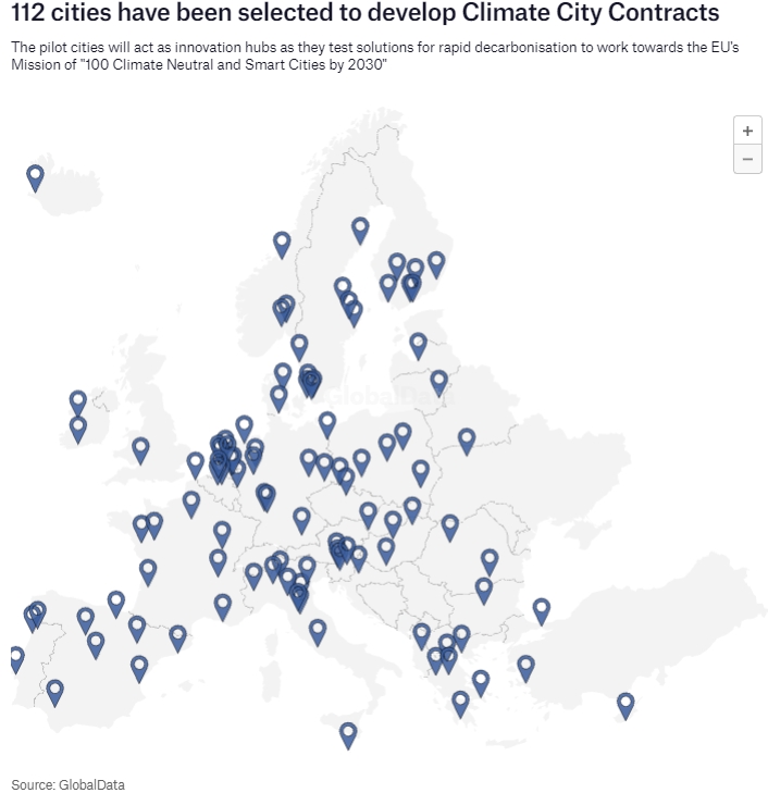 An estimated €650bn ($707bn) of funding is needed to help over 100 European cities progress towards the 2030 carbon-neutral goal.