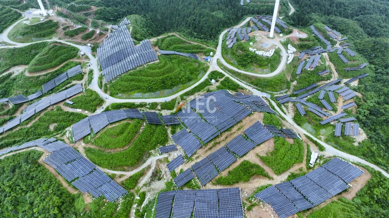 The new generation of ATEC SunOptimus Flexible Brackets,Pre-stressed steel strands are used to fix the PV modules,The strand span can reach over 17 metres,Adapts to the slope,Maximum adapt to steep slopes, gullies and other complex mountainous terrain ,Reduced row spacing at the same time,Average 16mu/MW(1mu=666.7m2),Improve the land use rate by more than 30%,Maximise land use efficiency Satisfy the demand for installation capacity,Let the light of science and technology bloom in the mountains.