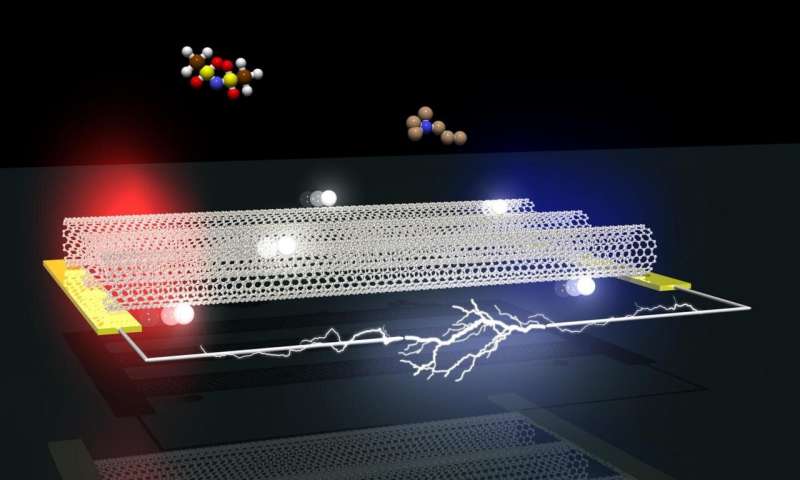 Scientists from Tokyo Metropolitan University have used aligned "metallic" carbon nanotubes to create a device which converts heat to electrical energy (a thermoelectric device) with a higher power output than pure semiconducting carbon nanotubes (CNTs) in random networks. The new device bypasses the troublesome trade-off in semiconductors between conductivity and electrical voltage, significantly outperforming its counterpart. High power thermoelectric devices may pave the way for more efficient use of waste heat, like wearable electronics.