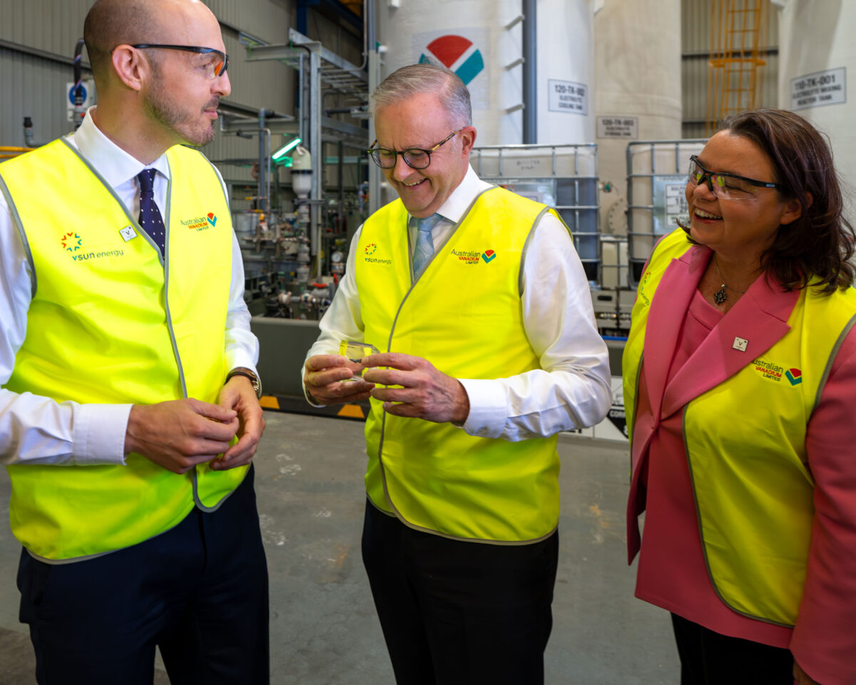 Australian Vanadium recently hosted Australian Prime Minister Anthony Albanese, Federal Minister for Resources and Northern Australia Madeleine King and Federal Member for Pearce Tracey Roberts to its vanadium electrolyte manufacturing facility in Wangara, Western Australia.