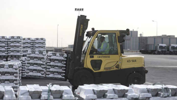 A fork light moves aluminium ingots at the aluminium processing plant at the Saudi Mining Company, (Maaden AB ) mineral industry complex in Ras Al-Khair, Saudi Arabia on Wednesday, Nov. 23, 2016.