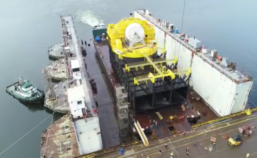 The first at-sea testing for the buoy design began in 2006 with a 1:4 scale device, and developer OceanEnergy partnered with Portland-based shipbuilder Vigor Industrial to manufacture the full-scale unit in 2018-19. It is expected that the OE35 will generate about 1.25-1.75 megawatts of power, about one-tenth the capacity of a GE Haliade-X wind turbine.