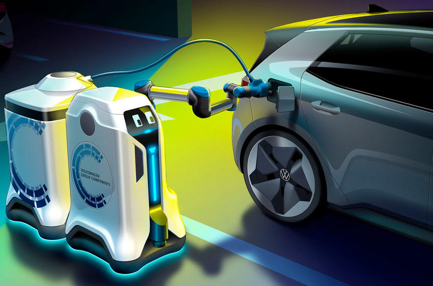 Volkswagen is working on a range of solutions for electric charges. It is one of the firms behind the Ionity 350kW charging network and has previously shown a prototype of a portable charging station.