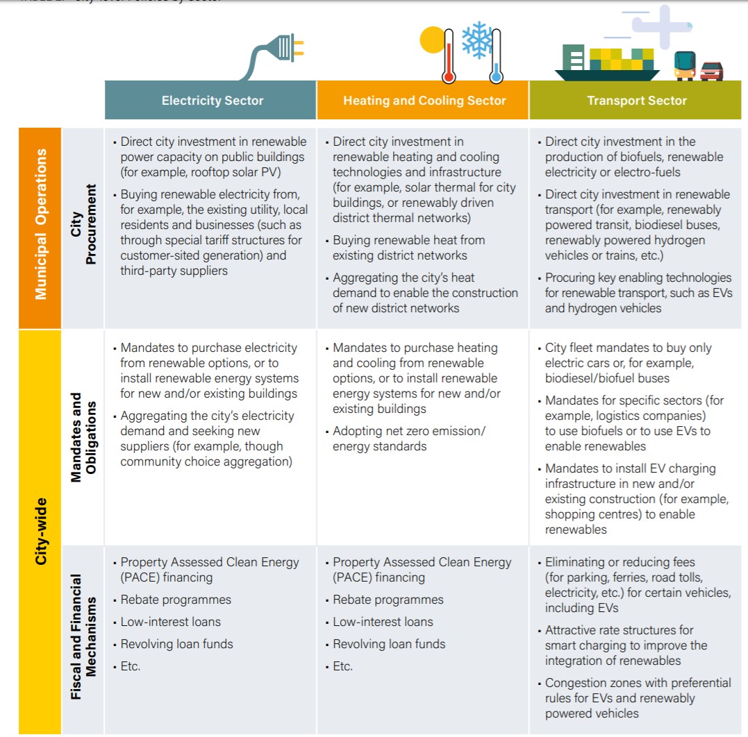 The document dives into drivers for renewables transition in cities, ranging from air pollution to energy security and sustainable transport. It also looks into the landscape of policies and targets adopted by cities. For example, targets vary from aspirational, simple and generic to binding, stepped-up and specific.