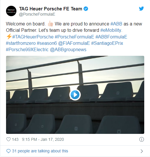 As part of a multi-level agreement, ABB becomes an official partner of the TAG Heuer Porsche Formula E Team, with immediate effect.
