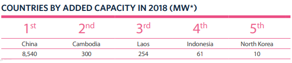 The country commissioned a further 254MW in capacity in 2019, but the sector experienced a very difficult year due to the collapse of Xe-Pian Xe-Nam’s saddle dam in July 2018. “Following the collapse, the Laotian government announced an investigation into its causes, a review of all existing and under-construction dams and a halt to proposed projects. The government also established a centre for dam safety management in order to prevent such incidents occurring in the future,” IHA said.