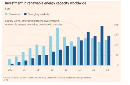 And while renewable investment has been climbing rapidly over the last decade, we had already started to see a slowdown by 2018.