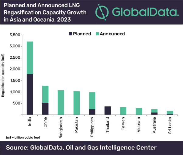 GlobalData identifies China as the second-highest country in terms of regasification capacity growth in Asia and Oceania in 2023.