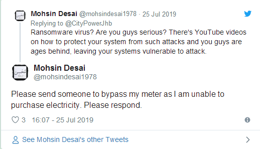 The virus has also affected City Power’s website leaving customers unable to access the site for information.