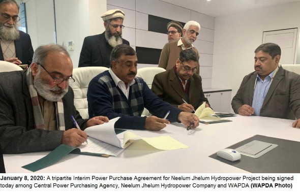 An interim agreement has been signed for the purchase of power from the Neelum Jhelum hydropower project in Pakistan.