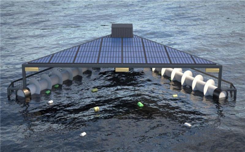 Solar And Wave-Powered Cleanup System for Collecting Plastics And Other Marine Debris