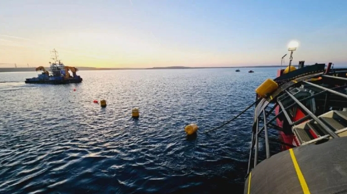 A barge with autotransformer intended for the expansion of the Lithuanian-Polish electricity system connection LitPol Link, moves past the Russian town of Sovetsk, as seen from Panemune, Lithuania May 14, 2021Lithuania said on Saturday it had disconnected