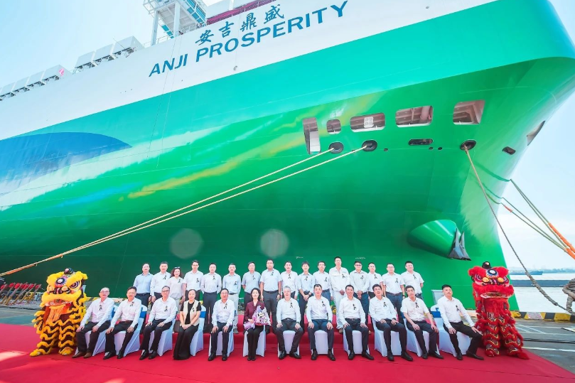 On August 26, Anji Logistics, a subsidiary of SAIC Motor, held a delivery and naming ceremony for its 38th self-operated roll-on/roll-off vessel, named ANJI PROSPERITY, at the China Merchants Jinling Shipyard in Yizheng city, Jiangsu province. The vessel,