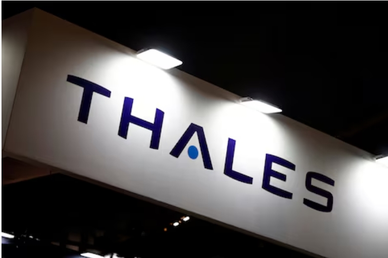 The logo of French defence and electronics group Thales is seen at the Milipol Paris, the worldwide exhibition dedicated to homeland security and safety, in Vil…