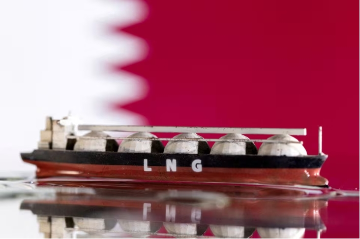 Model of LNG tanker is seen in front of Qatar's flag in this illustration taken May 19, 2022. REUTERS/Dado Ruvic/File Photo Purchase Licensing RightsQatar w…
