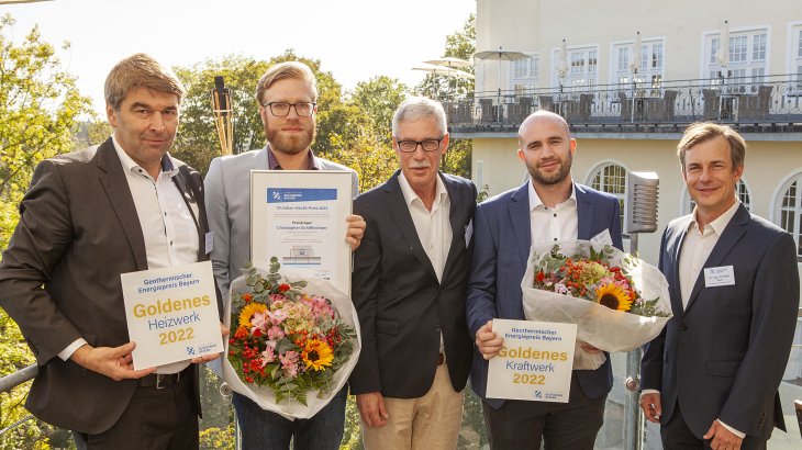 Dr. Jochen Schneider, Christopher Schifflechner, Jorg Uhde, Felix Borchert, Dr. Christian Pletl during the 2023 Praxisforum Geothermie Bayern (source: Tiefe Geo…
