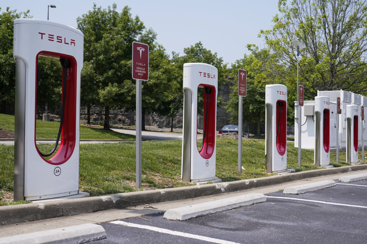 FILE - A Tesla electronic vehicle charging station is seen Thursday, May 25, 2023, in Nashville, Tenn. The Biden administration is making available $20 billion …
