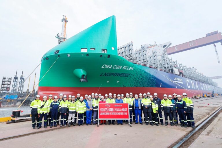 Chinese shipbuilder Hudong-Zhonghua has launched a newbuild 13,000 TEU LNG dual-fuel containership for French shipping giant CMA CGM.Courtesy of Hudong-Zhonghua…