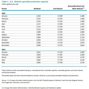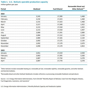 EIA: US Biofuel Capacity, Feedstock Consumption up in April