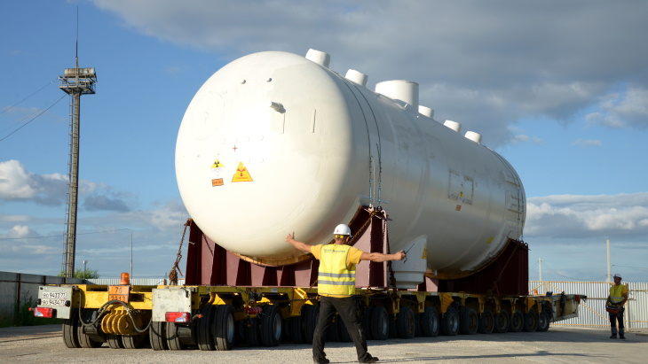 Workers at Russia's Balakovo nuclear power plant have removed the first of four used steam generators from a storage facility and prepared it to be transpor…