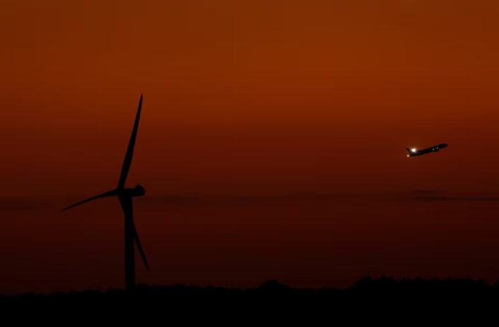 A wind turbine is seen as a plane flies during sunset in Tokyo, Japan November 8, 2022. REUTERS/Kim Kyung-Hoon/File Photo Purchase Licensing RightsJapan's g…