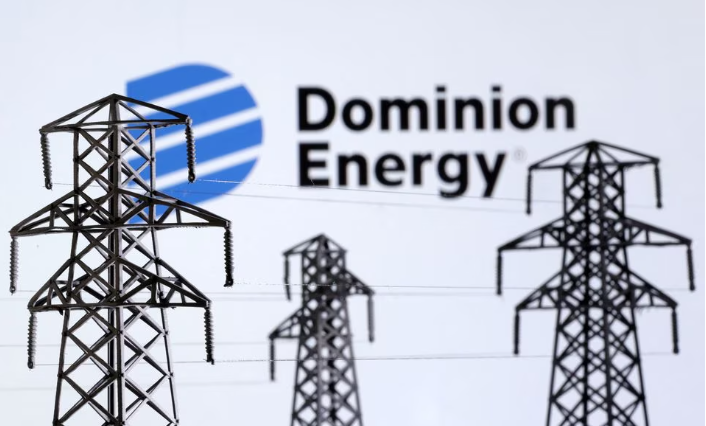 Electric power transmission pylon miniatures and Dominion Energy logo are seen in this illustration taken, December 9, 2022. REUTERS/Dado Ruvic/IllustrationDomi…