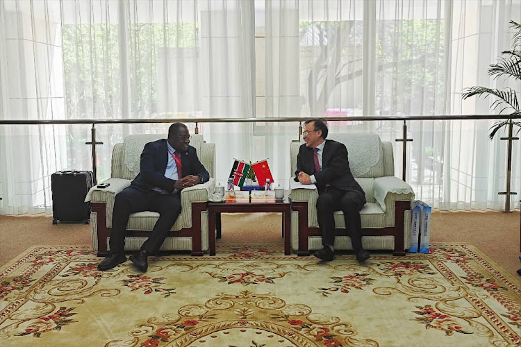 NuPEA CEO Justus Wabuyabo (left) with China's National Nuclear Corporation Overseas Ltd president Wang Yongge during a meeting in Beijing, China.Image: COUR…