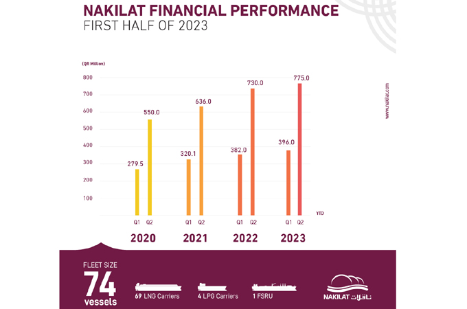 Nakilat, one of the world’s largest liquefied natural gas (LNG) fleet operators, achieved a net profit of QAR775 million ($212.85 million) for the first h…