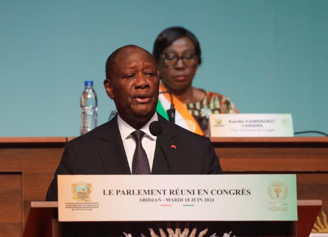 Ivory Coast's President Alassane Ouattara speaks during the parliament congress in Abidjan, Ivory Coast June 18, 2024. REUTERS/Luc Gnago Purchase Licensing …