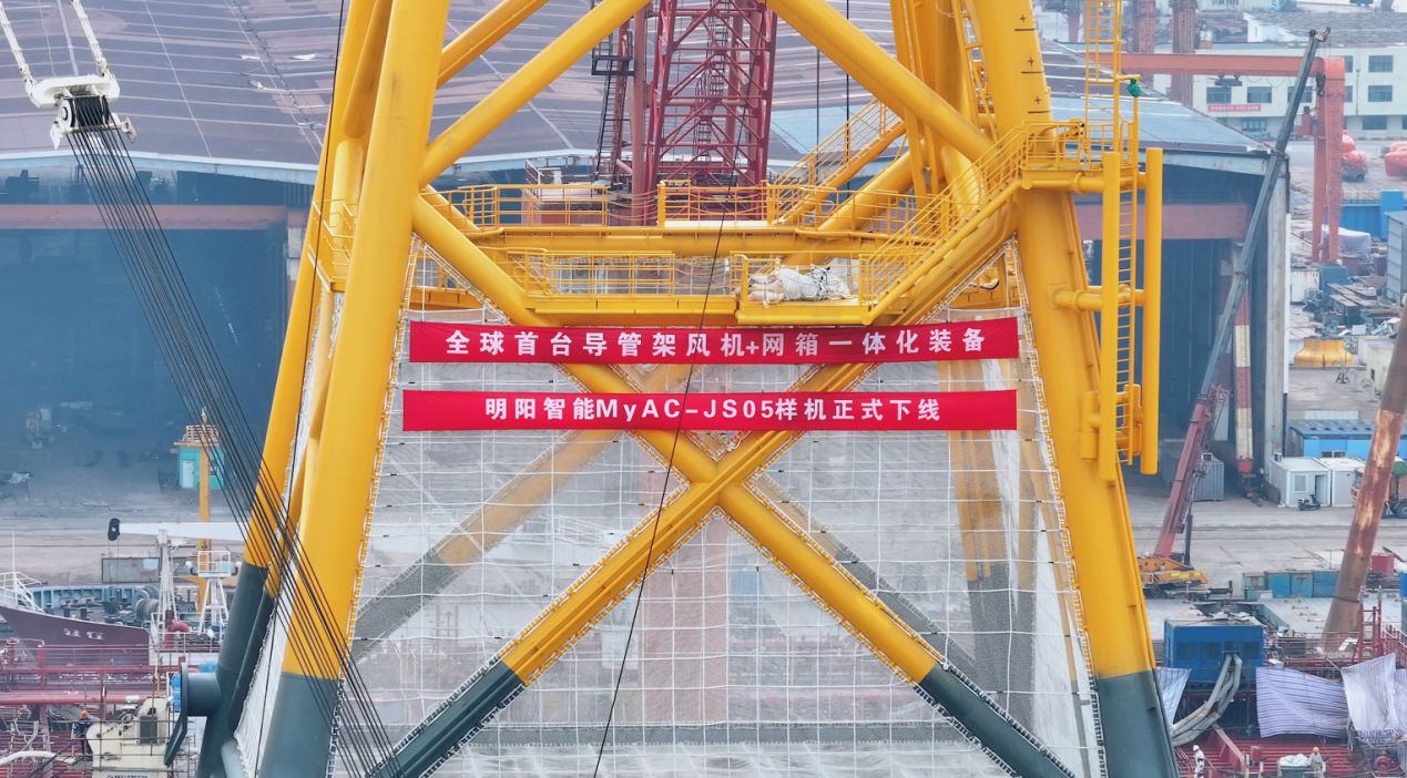 Mingyang's First 12 MW Wind Turbine up Offshore China, Fish-Farming Jacket Ready for Installation