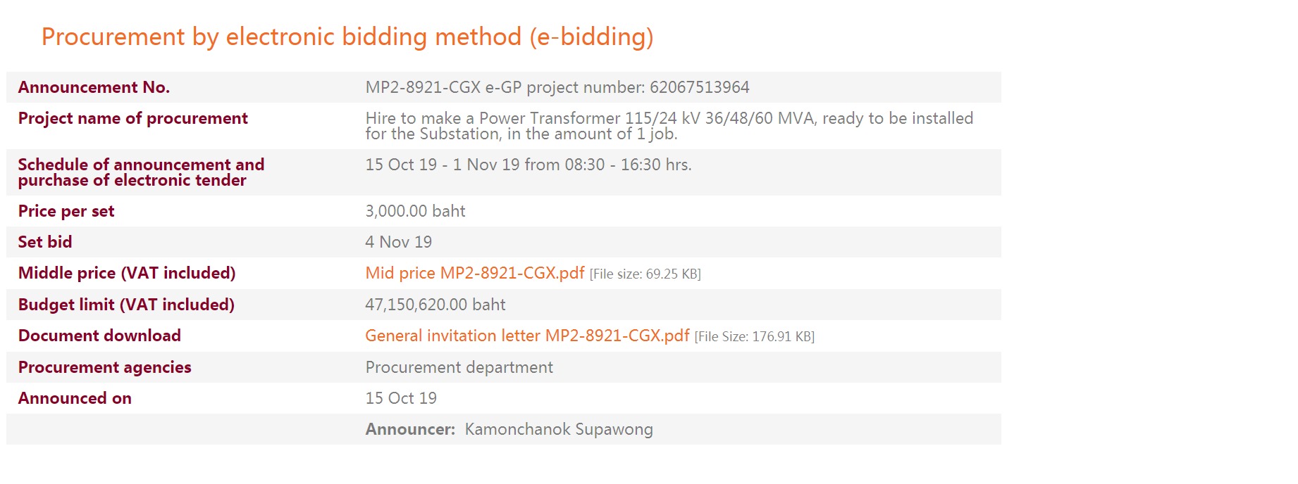 Tender are Invited for Providing Hire to Make A Power Transformer Size 115/24 Kv 36/48/60 Mva with Installation for Sub-Station in the Amount of 1 Job.
