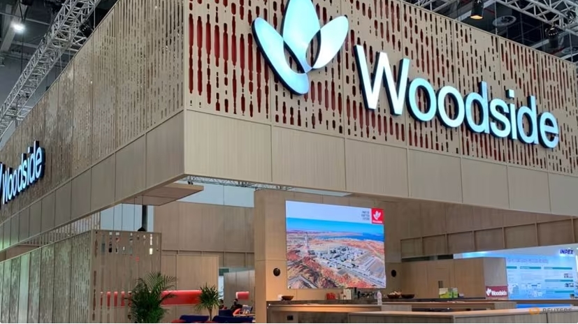 FILE PHOTO: Australia's Woodside Energy Group's exhibition booth is seen at the World Gas Conference 2022 in Daegu, South Korea May 23, 2022. REUTERS/Fl…