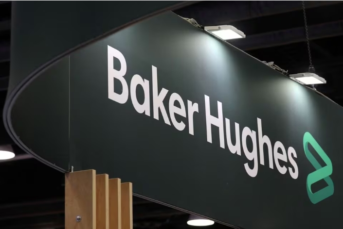 The logo of energy services firm Baker Hughes is displayed during the LNG 2023 energy trade show in Vancouver, British Columbia, Canada, July 12, 2023. REUTERS/…