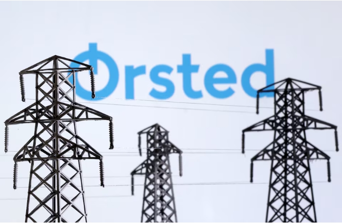 Electric power transmission pylon miniatures and Orsted logo are seen in this illustration taken, December 9, 2022. REUTERS/Dado Ruvic/Illustration/File Photo P…