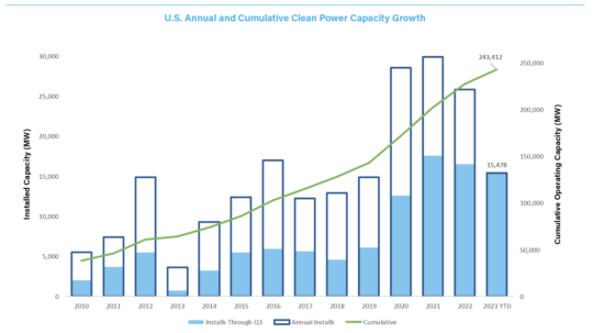 The American Clean Power Association (ACP) today released the Clean Power Quarterly Market Report | Q3 2023, showing that the industry brought online 5,551 mega…