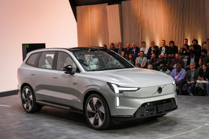 Volvo EX90, the company's new electric SUV, is unveiled during a launch event in Stockholm, Sweden November 9, 2022. Anders Wiklund/TT News Agency/via REUTE…