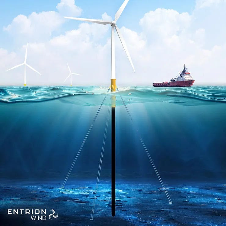 Entrion Wind Patents a Guyed Monopile to Bring Fixed-Bottom Offshore Wind to Depths of 100 Meters