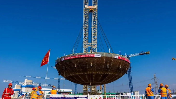 The containment vessel bottom head (CVBH) for unit 4 at the Haiyang nuclear power plant in China's Shandong province has been installed 40 days ahead of sch