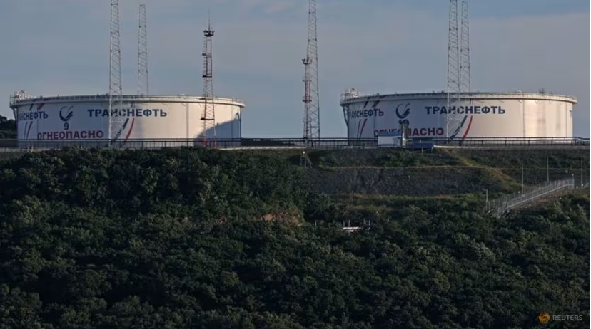 FILE PHOTO: A view shows oil tanks of Transneft oil pipeline operator at the crude oil terminal Kozmino on the shore of Nakhodka Bay near the port city of Nakho
