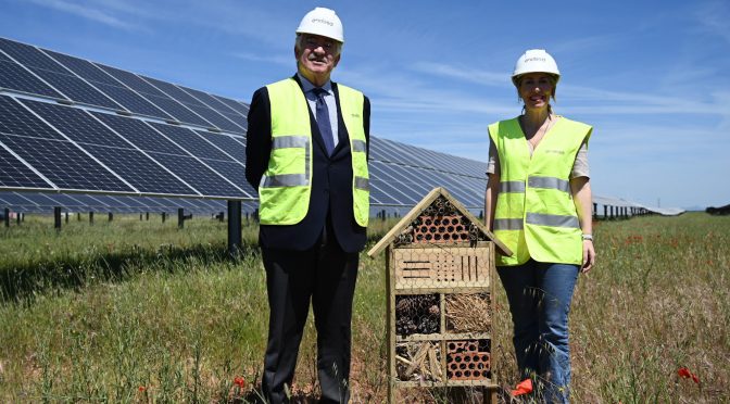 The President of Extremadura and the CEO of Endesa Visit the First Steppe Bird Reserve in a Photovoltaic Plant