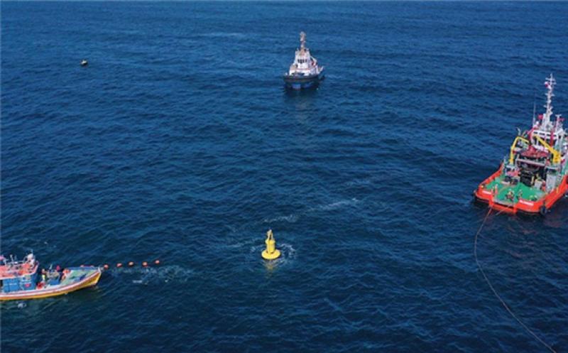 CorPower’s C4 device in Portugal.Swedish company CorPower Ocean and Norway-based OPS Solutions have developed a pre-tension cylinder (PTC) prototype, mark